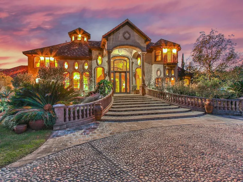 Spectacular 7,344 square foot equestrian estate in gated community of the Ranches of Pinehurst - close to The Woodlands with easy access to major transportation thruways - on 19 acres features a custom home constructed with Cantera Stone, an 18 stall horse barn built of Old Chicago Brick and an infinity pool overlooking the scenic stocked lake.