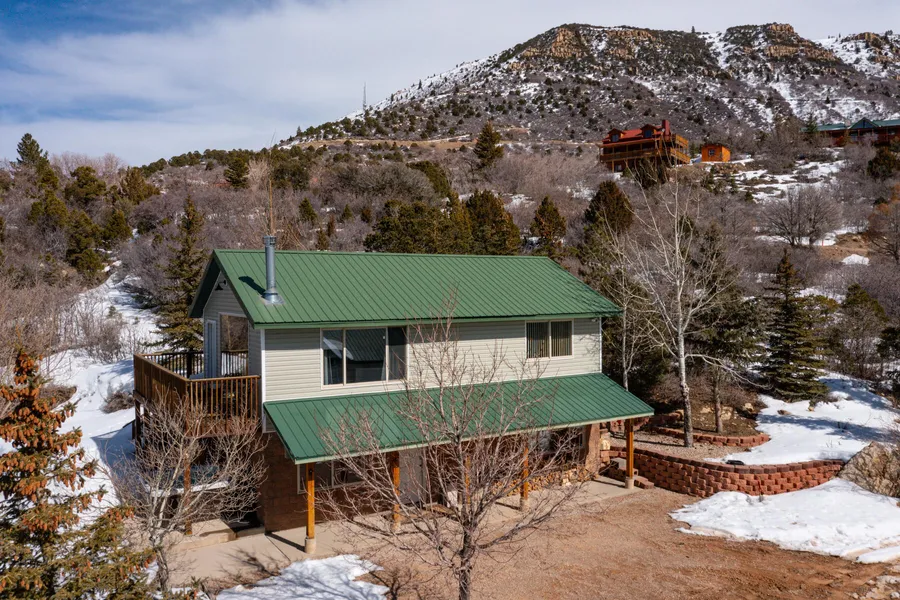 Nestled on the impressive slopes of Cedar Highlands, this beautiful home sits among the most peaceful canopy of trees. With 1.83 acres and at almost 8,000 feet of elevation over the Cedar City Valley, this charming 2 story country cottage features 1,400 SqFt, 2 bedrooms, 2 bathrooms, 2 living rooms, wood flooring, white cabinets, an open floor concept with plenty of natural light, a large portrait window, view deck, covered porch with hot tub, detached garage (1,032 SqFt), murphy bed, wood burning fireplace, and so much more. Main floor living room could potentially be turned into a 3rd bedroom. The home is surrounded by tall juniper trees and mature landscaping. Located only 20 minutes from Cedar City, home to Southern Utah University and the Utah Shakespeare Festival, you'll find many amazing restaurants and activities. As part of Southern Utah, you will experience a lifestyle like no other. The area features nearby internationally recognized mountain biking trails, road cycling, hiking, golf courses, national parks such as the Grand Canyon, Zion, & Bryce, plus national moments, national forest, reservoirs, & some of the most iconic desert landscape in the world. Less than an hour from Brian Head Ski Resort, there is no doubt that this is a fun place to live and play. Best of all, it is less than 3 hours from Las Vegas.