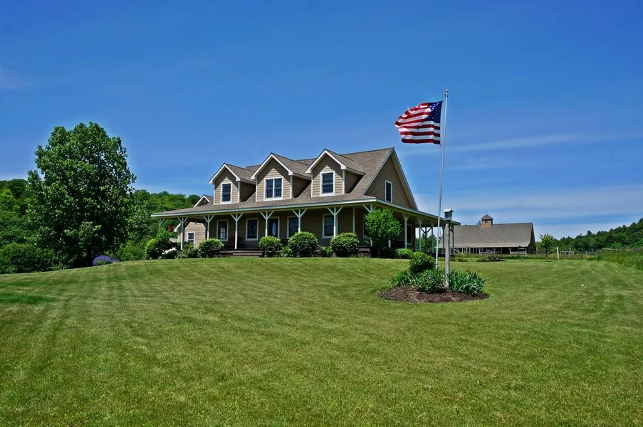 Breezy Hill Ranch - A privately situated farmstead set on 91 acres of both open and wooded land with beautiful views of the surrounding mountains and overlooking Barkley's Lake. Comprised of a 3-4 bedroom custom built Cape, a 1.5 story 36' x 60' barn with 12' overhangs on each side, and a 24'x 32' barn, this property is very comfortable for both family and animals. The home and outbuildings were built in 2006-2007 with quality materials used throughout. An established campsite features an open air pavilion and a bunk house.