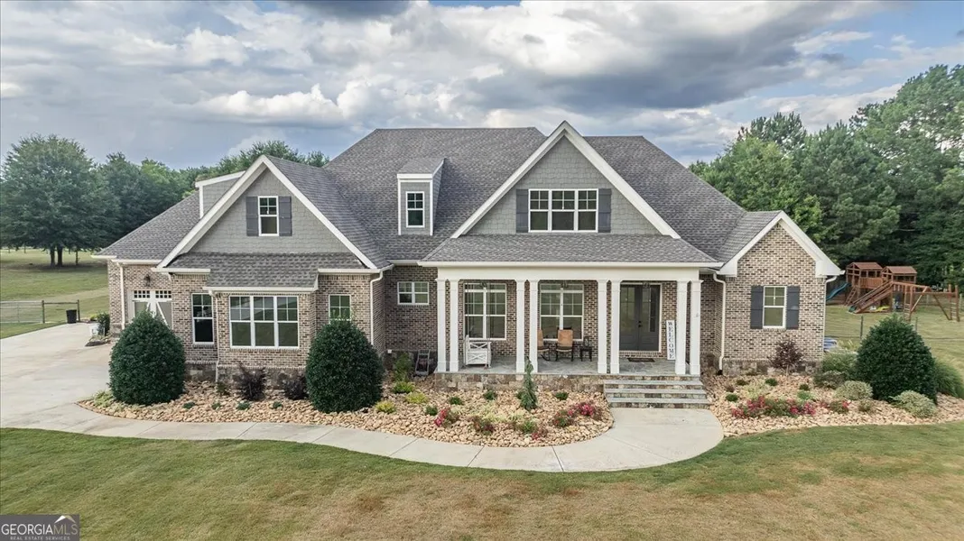 Discover the epitome of comfort and elegance in this stunning 4-bedroom, 4.5-bathroom home nestled just on the outskirts of Monroe, Georgia situated on 12 beautiful acres that is held in Conservation use. Boasting an expansive 4,712 square feet of living space, this gated residence is perfect for those who appreciate the fine craftsmanship and thoughtful design in their living environment. Step inside to an extra-wide foyer with 6" white oak floors, 8-ft doors & 10-ft beamed ceilings. As you approach the common areas of the home, you will find a blend of open-concept design in the living / kitchen areas, but you'll also find separate spacious rooms like the dining room that can seat 12 with plenty of space for a china cabinet and other secondary furniture. The kitchen is a chef's delight with quartz countertops, large walk-in pantry, an oversized island with bar stools, plus professional grade appliances incl gas range. The main level's floor plan truly blends modern amenities with timeless appeal. 2 fireplaces: one in the keeping room and one in the main living room, both masonry, will keep you warm in the winter months and offer plenty of space to entertain guests as they mingle between rooms and out onto the covered deck overlooking the outdoor oasis. The owner's suite is a treat! With its vaulted ceilings and bath with double vanity, his & hers closets, plus oversized shower with 2 shower heads and separate soaking tub, you'll never get in each other's way! Each secondary bedroom is designed with luxury and privacy in mind, featuring well-appointed en-suite bathrooms in each additional bedroom that offer a spa-like retreat from the busy world. There is a primary laundry room on the main as well as a second laundry room upstairs, and a 6' overlook to the living room from the second floor. The tankless gas water heater ensures you'll never take a cold shower again! The remainder of the home is all-electric, allowing for modest utility bills. The home also has county water. And what about storage, you ask? No need to worry! This home has storage galore: 1 bedroom with storage compartment, 1 bedroom with full attic, not to mention the storage capacity in the 3-car garage and the storage building (with power) and red metal barn included on the property. Outside, the property is a true sanctuary, featuring a sizable lot that provides ample room for outdoor activities and leisure. The covered patio and open deck overlook what is the centerpiece of the outdoor space: a magnificent gunite saltwater & heated pool that promises endless hours of fun and relaxation. Adjacent to the pool, the outdoor oasis is perfectly set up for hosting gatherings or simply soaking up the serene ambience of your surroundings. Quality of construction is evident throughout with premium materials and finishes that ensure durability and aesthetic appeal. The serene environment around the home adds to its charm, offering a tranquil setting that is still conveniently close to key amenities. All that Downtown Monroe has to offer is a short 10 minute ride away, adding to the practicality of this superb location.