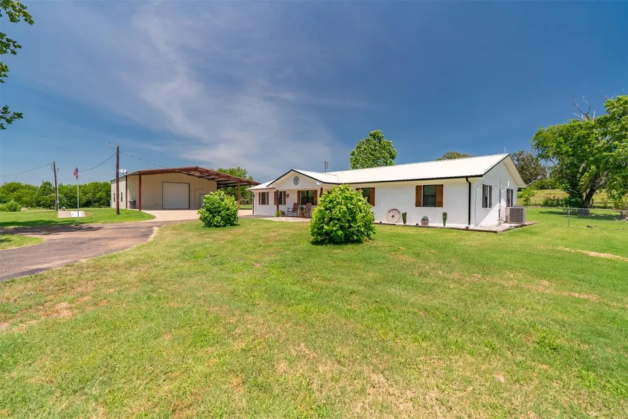 PRICE REDUCED -- NO RESTRICTIONS! AG-EXEMPT! Looking for a solid updated home with some acreage, in a quiet country setting? Here it is! Most every wall in the home stripped to studs & put back five-eighths inch fire-block drywall, with spray foam & new insulation, & vapor barrier. Kitchen has new high-end appliances. Gorgeous updated tile showers, one with deep soaker tub. The shop is great! It has a mini-kitchen & half-bath with storage above, & large overhang on front serves well for covered parking. In ground storm shelter. True High-speed internet. This all sitting on a serene 7.53 acres! Scattered mature oaks on a high hill behind the home. Only thing left with the makeover is some wood look tile flooring, which sellers have all materials needed for completion. This type of work simply cannot be done until after moving. This is on the market earlier than planned. Buyer to verify all information.