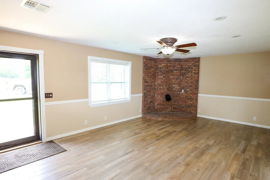 The home has been completely remodeled to perfection. The ambience is like walking into a new home. It features tile flooring though out, and updated white vinyl windows with 2-inch blinds. The kitchen/living/dining area is open concept. The living area features a chimney for a wood burning stove to supplement the central HVAC system (replaced in 2018). The kitchen sports Kitchen-Aid stainless appliances that are less than two years old, a breakfast bar and a pantry. The full hall bath is completely updated and nice size with a tiled shower/tub surround. The main suite features a large bath with jetted tub/shower combination and tiled surround, linen closet, and walk in closet.