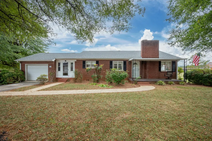Brick ranch set on 4+ acres in Yadkin County. Home offers full unfinished basement with fireplace, a sunroom, a breezeway with laundry area, and attached 1-car garage with garage door opener. Gas log fireplace in living room. Hardwoods are under carpet. Detached 3-car carport has power and concrete floor, with enclosed workshop in back portion that is finished and has tile floor and lights. Land is level and partially wooded. Property is zoned as community business. This property has so much potential!