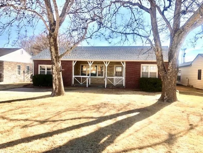 This brick ranch style home offers single floor living on a quiet street, right across from Russell Regional Hospital. It has 3 bedrooms and 1.5 baths with a walk in shower in the main bath. The home also features a large family room, a large kitchen, plus a TV room or den with floor to ceiling built in shelves and cabinets. The two car attached garage is in the rear of the home and is accessed thru the alley. The owners stated that the original hardwood floors are still in present under the carpeting which covers most of the home.
