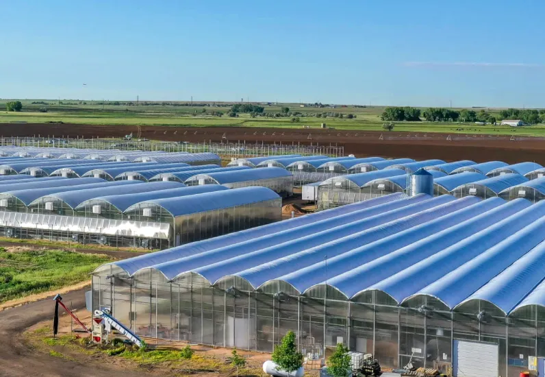 Located 1.5 miles from Brighton, CO and within the 298+/- acre Rock Family Farm at an elevation of 4,984 feet , the Greenhouses operate under a long term ground lease with the Farm which provides access to water, utilities and common areas. Four generations of the Rock Family have operated the Farm producing alfalfa, hay and other crops. Their land stewardship is a valuable asset to the Greenhouses.