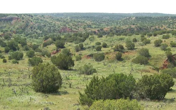 Terrain: The Foster Briscoe Ranch is a scenic property having diverse terrain. Some canyons create 200ft. elevation change yet it promotes a high percentage of useable livestock range. Scenic Hackberry Creek runs through the ranch several miles yielding numerous seasonal water holes. Mesquite, Cedar, Hackberry, Cottonwood and willows provides shade and cover for livestock and wildlife.