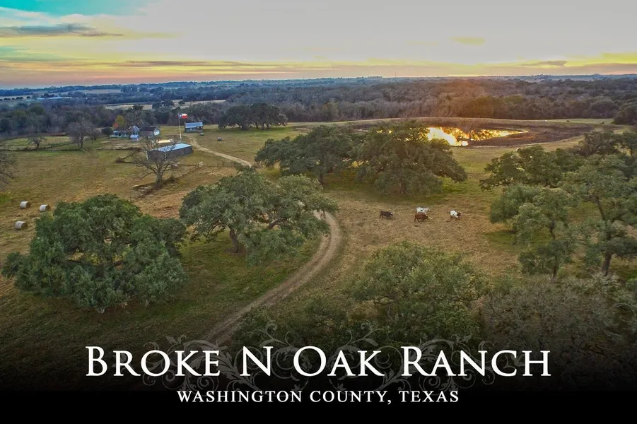 Approx. 85.845 acres featuring numerous groves of grand old live oak trees scattered throughout the property. Enter the meandering driveway and follow as it crosses a rock bottom wet-weather creek and leads its way up to the hill top through the trees. There is a Farmhouse featuring a large porch, 3 bedrooms, 2 baths, kitchen/dining, living room and walk-up attic for additional storage or future rooms. Other improvements include a restored log cabin guest house with 1 bedroom, 1 bath, fireplace & porch that overlooks the pond; Swimming Pool with pergola; and pole barn/shop with concrete floor and storage room. There are three ponds and cross fencing. The Broke N Oak Ranch offers secluded privacy with only a short drive for shopping and a few minutes to Lake Somerville with paved road access, wildlife and a great additional home site located among the Live Oak groves. It is located less t...