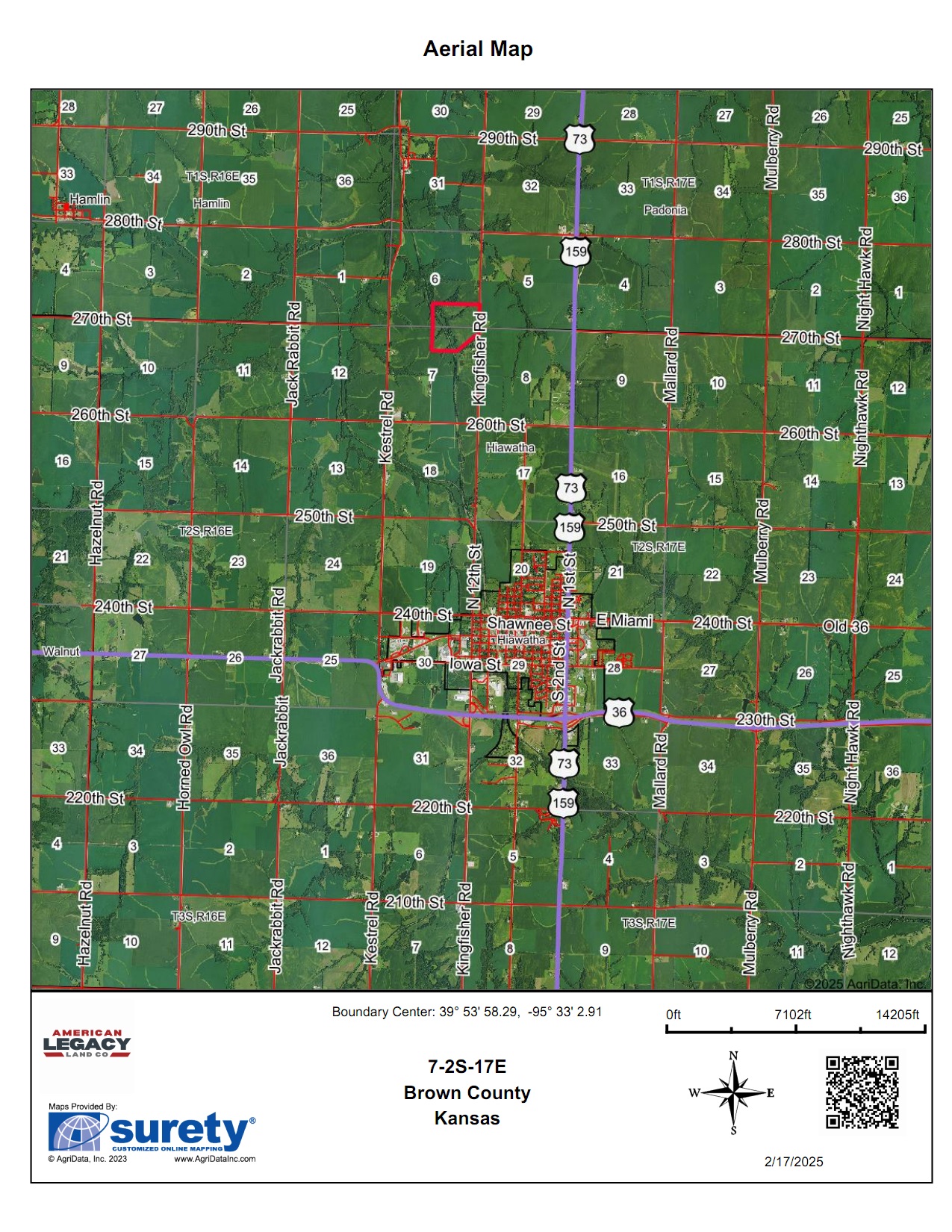 Research Parcel InformationFrom Hiawatha, KS: Take N 12th Street North out of Hiawatha, KS. N 12th Street turns into Kingfisher Rd. Take Kingfisher Rd north for 3 miles and the property will be on the west side of the road.
