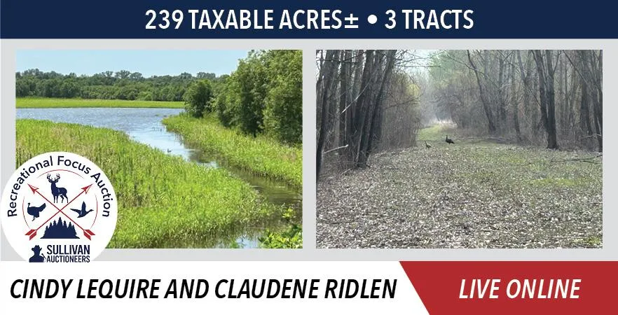 The farm contains a total of 239 taxable acres and borders the Illinois River. It will be sold in 3 tracts which offer outstanding hunting and outdoor recreation with excellent waterfowl, deer, turkey and fishing opportunities, as well as CRP income.