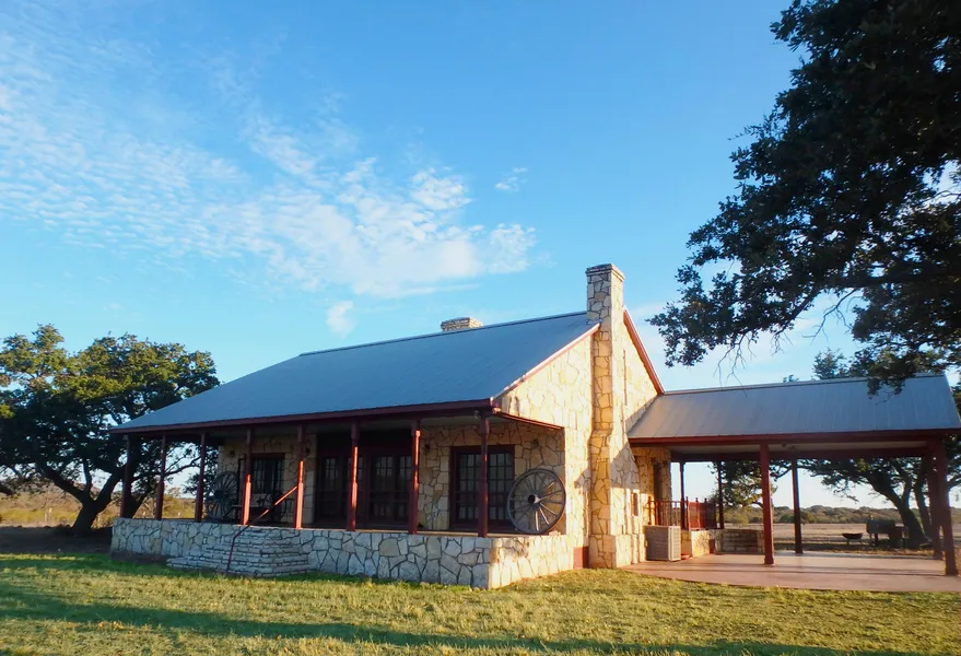 This 190.27 acre ranch is located in NW Llano County, just south of Smoothing Iron Mountain. This ranch has good access with over a quarter of a mile of county road frontage on Co. Rd. 405, while there are no easements through the ranch. The terrain is gently rolling with two tributaries of San Fernando Creek. There is an excellent balance of live oak and post oak trees, along with some mesquite trees and a limited amount of brush. There is a 20 acre field area that could easily be converted to improved grasses or food plots for wildlife. The ranch is cross fenced into two main pastures and three smaller traps. There is a nice set of working pens. The main house is located on the highest point on the ranch. There are two large covered porches, front and back, that take advantage of the great views. The limestone home is a modern 3/2, Texas style country home with a large attache...