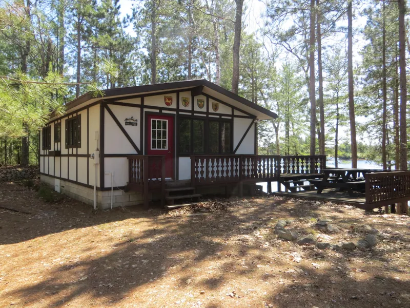 Built in 1988 this cozy cabin sleeps 10+ w/bunk beds & finished "bonus" room in detached garage -- impeccably maintained w/many recent upgrades, laminate flooring, newer carpeting, cathedral ceiling throughout, air conditioning & water softener. Great open deck area for outdoor entertaining. The frontage is outstanding and perfect for swimming!! Take advantage of this rare opportunity to own on 2 lakes for the price of one!