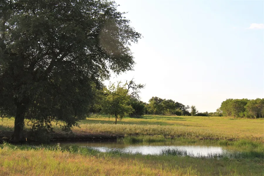 Who wouldn't want to own a ranch like this? Gently rolling hills with hundreds of mature oak and elm trees interspersed with open grassland gives this ranch a park-like quality. There are so many potential home sites it would be hard to decide where to build your dream home. Much of the underbrush has been cleared but areas have been left untouched to provide habitat for white tail deer, wild turkeys and other wildlife. A seasonal creek runs through the northeast part of the ranch and is densely populated with huge pecan trees forming a natural "pecan bottom." The area is over-grown now but at one time, kids played in the water running over the old concrete slab where the road once crossed the creek. The creek and the surrounding terrain offer the possibility of building a pond/tank to capture the rainwater run-off. The windmill over the water well has been replaced with a solar pu...