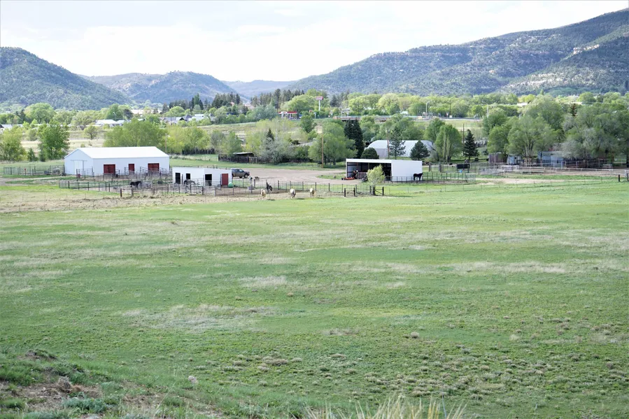 The property consists of two contiguous parcels combining for 100-acres +/-. The majority of the parcel consists of level to rolling native grass hills providing excellent views in all directions. The property has been perimeter fenced and cross-fenced (five strand/smooth wire) to include (4) large pastures and runs. High protein native grasses provide ample forage and the pastures have been well-managed to prevent over-grazing. Water is supplied by the City of Raton and has been distributed by underground pipe to the newer residence and boarding facilities. Should you desire, the placement of a well near the central portion of the larger tract would facilitate water availability to the individual pastures.