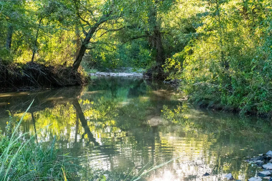 There are several improvements on the property including a rustic lodge with 3 bathrooms, a primary bedroom and two buck rooms! The lodge is open with a large industrial kitchen with a commercial stove for cooking and entertaining guests. With a wall of windows to the East and a massive covered back porch with a guitar shaped firepit you can spend your mornings and evenings watching deer filter in and out of the fields as they graze. The lodge water source is fed from a live spring on Bald Mountain and it has been a reliable clean water source for many years. Buck Creek itself has mature oak and pecan creek bottoms and is nearly 2 miles in length on the property. This full time creek provides a plentiful water source for native wildlife and in the high season some great recreation in a canoe or kayak. In addition to the creek there are several ponds on the property. The largest centrally located on the ranch is a great spot to hunt waterfowl in the fall. The mammoth Bald Mountain encompasses the east side of the ranch. Atop it, one can see for miles and there are boundless opportunities for hunting, hiking, four-wheeling, horseback riding and camping. The ranch has a good system of roads that allows for access throughout the ranch, including the crest of the mountain with pine forests and views that rival Colorado. Visitors are awestruck and cant believe that all of this is so close to North Texas.