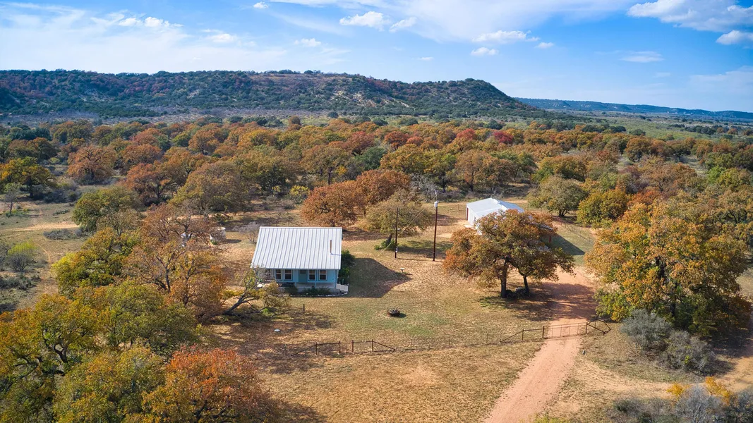 What a setting! Valley ranch on the edge of the Blue Mountain Range in SW Mason County. Deep red sandy loam soils, vibrant & abundant post oaks, blackjack oak, live oaks, mesquite trees and bee-brush cover for wildlife (whitetail deer, turkey, wild hogs, dove, quail, coyote). Very little cedar. Quality built (Hill Country Classic Homes, 2012) 2 Bed/2 Bath home with 1,248 sq. ft. of living area, 180 sq. ft. screened back porch, and 192 sq. ft. covered front porch (1,620 sq. ft. total under roof). Hardi board exterior with metal roofing. Additional 1,500 sq. ft. enclosed, insulated steel barn/shop with a full bath, sink and kitchenette. 750 sq. ft. attached carport built in 2009. 17 gpm water well with concrete storage tank and 2 stock ponds. Perimeter fenced with excellent road access through and around property. Gated entrance on county road frontage. Located next to the huge Star S Ranch where many exotic game can be seen across the south boundary line fence.