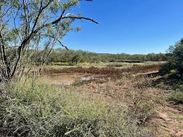 The terrain of the property is sloping and some lower area around the creek and dirt tanks. The northern portion of the tract has been cleared and is open pasture land, with smaller mesquites beginning to take back over. The southern portion of the land is thick mesquite and other native brush.