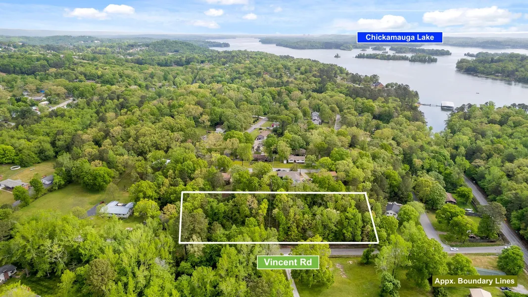 BUILD on over 1 acre near Lake Chickamauga! 300+/- ft of road frontage on Vincent Rd. Utilities including EPB FIBER OPTICS available at the road. Rolling topography with minimal restrictions. 4 minutes to Chattanooga Yacht Club, 6 minutes to Hwy 58. 10 minutes to Wolftever Creek Boat Ramp. 10 minutes to Enterprise South. 16 minutes to Harrison Bay State Park. 20 minutes to Downtown Chattanooga. (Any and all property lines on photos are simulated and are approximate. Buyers to verify acreage, restrictions, property corners, property lines and all matters deemed important to purchaser. Three parcels to transfer with sale: 112H A 017, 112H A 018, 112H A 0019.)