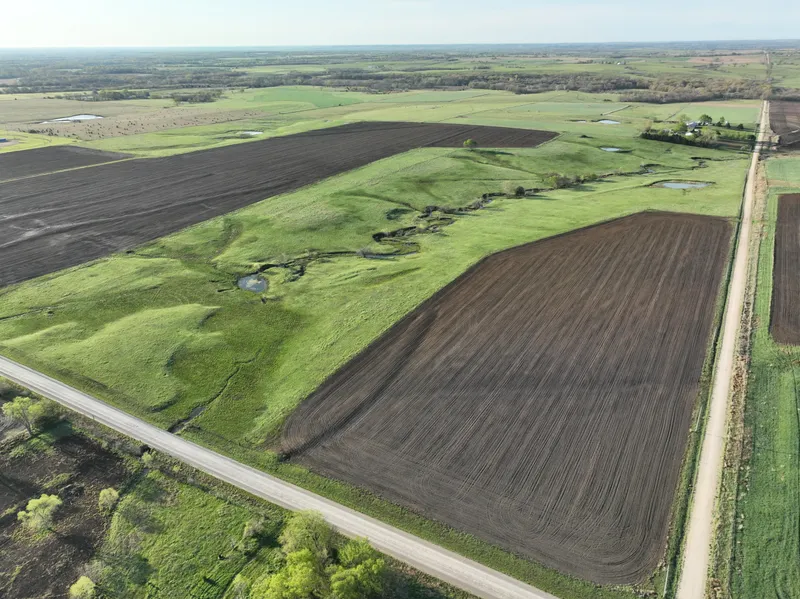 Build your dream home on this corner lot within a quarter mile of pavement. Take advantage of the income with approximately 56 m/l acres tillable and 48 m/l acres in pasture. The pasture is fully fenced with multiple gates to meet all your livestock needs. Two small ponds and a small creek/ditch provide many options for livestock to water. Minutes to Pomona Lake to meet all your recreational needs. A short commute to Ottawa, Baldwin City, and Lawrence makes this attractive for country living potential build site location. Give us a call today for showing! Additional acreage available.