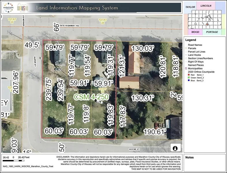 Mosinee is one of the fastest growing communities in Central Wisconsin! With easy access to Interstate 39, the Central Wisconsin Airport, Industrial Park and other local businesses, this 1 acre parcel is a very desirable spot for many types of businesses. The combined 5 parcels are all zoned B-3 General Commercial (see associated docs for full zoning details). The unique 3-sided frontage (total of approximately 600 feet of road frontage) offers exceptional opportunity for drive-thru potential and easy accessibility/exit. Seller is offering a build to suit agreement or land lease. Seller will demolish and remove existing structures.