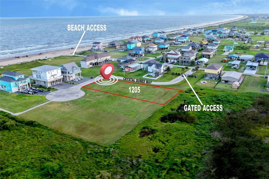 Welcome to one of the finest homesites on the Bolivar Peninsula — an exceptional oversized, 2nd Row, 0.429-acre lot located in the exclusive, gated community of Crystal Dunes. This rare offering combines privacy, coastal elegance, and true build-ready potential, making it the ideal setting for your dream beach home or luxury vacation retreat.