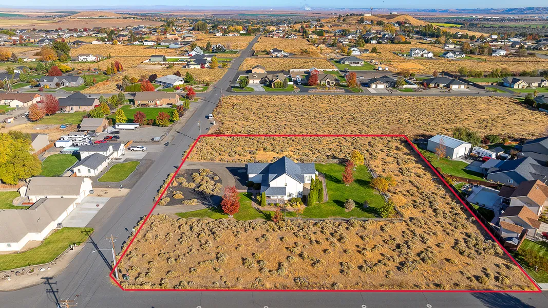 Subdivide Your Dreams on 2.5 Acres Unveil the endless possibilities of this exceptional single-family home situated on a rare 2.5-acre lot in the delightful community of West Richland, WA. Perfectly blending rural charm with modern living, this two-story residence offers both family comfort and promising investment potential. Step into a thoughtfully designed space featuring three bedrooms, each with its own private bathroom, ensuring convenience and privacy for families and guests alike. Additional features include a dedicated home office and a flexible loft space tailored to adapt to your lifestyle. At the heart of this home lies a beautifully updated kitchen, where contemporary amenities meet timeless design, creating a culinary haven for family meals and entertaining friends. Adjacent, the oversized vaulted family room invites warmth and connection under its soaring ceilings. Elegance abounds with genuine hardwood floors gracing the living and dining areas, reflecting quality craftsmanship throughout the property. Beyond comfort, this home offers practicality with an oversized three-car garage, ample storage, and easy access to schools, shopping, and major routes, ensuring convenience without compromising tranquility. A unique opportunity awaits with the potential for subdivision into multiple parcels, making this property not only a home but also a wise investment for the future. Don’t miss out on this rare gem! Schedule your visit today and embrace the charm of country farmhouse living. With a welcoming wrap-around porch and versatile interior, this home is designed to accommodate every stage of life, inviting you to create lasting memories in a setting where elegance meets homely warmth. Experience the beauty of natural light and breathtaking night skies, making every moment spent here truly special. Act now, as homes like this are a rare find! Visit today and turn your real estate dreams into reality.