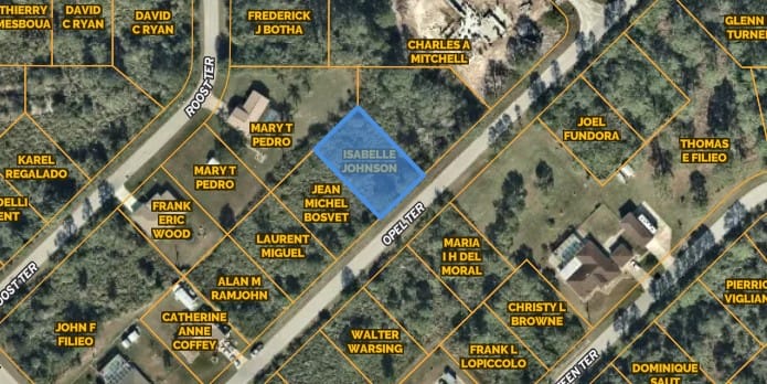Coordinates: NW corner: 26.9609, -82.2427 NE corner: 26.961, -82.2426 SW corner: 26.9606, -82.2425 (ROAD) SE corner: 26.9608, -82.2423 (ROAD)