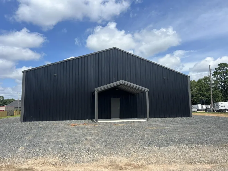 Brand new 60 X 80 METAL BUILDING w/ 60 x 20 awning on the back. Side walls are 15', center of rooms are 20'+ high. There is a center wall dividing the building into 2 separate sections. Double doors between the sections can be left opened or locked off for separate businesses. Each side has a 1/2 bath. The front side has an office space with floored storage above & a full staircase to the upstairs. Front office will have a mini-split unit for AC & Heat. Completely fenced w/ ornamental iron fence on the front & iron gate @entrance. There is a little finishing to do inside, bath rooms are not complete. They will have both have vanities & toilets. Tax figure is based on unimproved land since the building is brand new. Explanation for some Features: (S) Reason for selling: Built it to sell; (ZC) Wall type: Metal; (ZD) Sq footage source: Builder. Owner of the LLC is a licensed Realtor in Arkansas.
