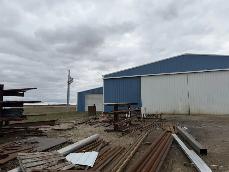 Excellent commercial opportunity on approximately 12± acres featuring three shop buildings with ample space for operations, storage, and expansion. The main shop offers approximately 12,750 square feet, ideal for large-scale equipment, manufacturing, or warehouse use. A second, mid-sized shop provides 9,360 square feet and includes an office area with a bathroom (toilet and sink), offering convenient on-site workspace. The third shop contains approximately 1,200 square feet, perfect for additional storage or specialty use. Multiple lean-to structures add even more covered storage options. The expansive acreage allows for easy access, parking, and future development. Equipment does not convey.