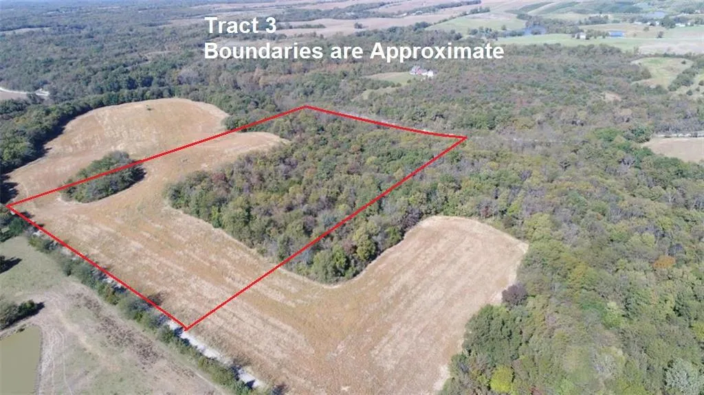 Offering is for Tract 3 of multi parcel package. If you have been looking for a semi-secluded building site that is close to interstate access and city conveniences this is it! Building site with great hunting opportunities including deer and turkey. Potential income from row crop. Great opportunity to have horses or mini farm. Water and electricity are nearby. Approximately 19 acres. Acreage to be determined by final survey. There are five lots that can be purchased individually or together. Note boundaries depicted in aerials are approximate and will be determined by updated survey.