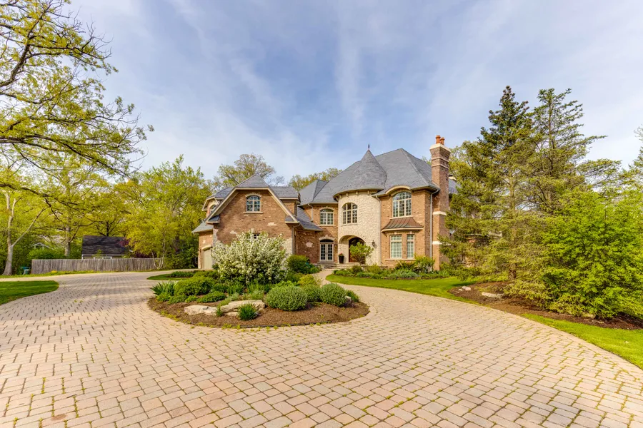 Built to last for generations, this builder's own home uses the finest in Old-World craftsmanship to make a home for all seasons. Magnificent setting- your guest arrive through twin stone cairns, and drive down the long approach to your castle in a very private setting. New DaVinci synth slate roof! Open floor plan with great flow. Huge great room has multiple entertaining areas, opens to rear covered patio with fireplace for those chilly fall evenings. Children's bedrooms have new wood floors. BR5=first floor office with fireplace has full bath (walk-in shower) adjacent, was previously 1st floor br. First floor stone floors are heated/radiant heat. Upstairs bonus room with its own BR ("maids room") is a teens paradise! 3-car garage. New furnace (2023), new Fisher-Paykel 8 burner stove. Basement has 9-10 ft ceilings, rough-in bath, large windows, separate exit, fireplace. Lincolnshire schools without the transfer tax.