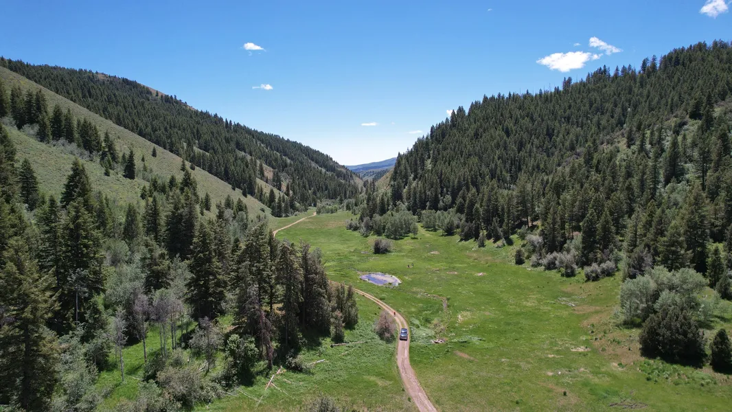 An ideal hunting and recreating property off Bull Canyon Road an hour from Malad City. Located in a secluded valley is an adventurer's paradise and serves as an ideal headquarters for recreation. It borders BLM and State of Idaho lands, offering expansive opportunities for exploration and outdoor activities. The mountainous terrain boasts abundant timber, seasonal streams, and a natural drinkable spring which has several access points as well as feeding into a serene pond. Also includes an Idaho State land lease and BLM permit, expands the grazing to 72 AUM's or several bands of sheep for a couple of months per year. A lush green meadow winds through the property, various timbered draws lined with evergreen trees and aspen stands. Attracting wildlife of all kinds, and within IF&G Hunt Unit 73A. There are well maintained roads that traverse the acreage, but usually not accessible in winter months. It's a playground waiting for exploration and adventure.