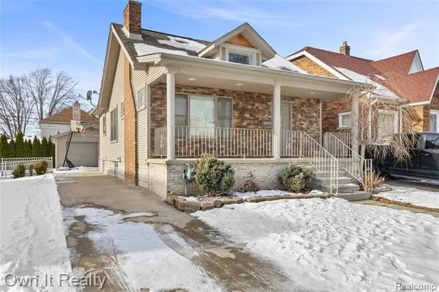 Welcome to this standout 3-bedroom Dearborn home offering space, comfort, and impressive updates throughout. Set on an extra-wide 70-foot lot, this property provides exceptional outdoor space and flexibility rarely found in the area. Relax on the covered front porch before stepping into a home that is truly move-in ready, featuring a newer roof and brand-new A/C installed this year. Inside, the fully tiled main level and basement include two updated kitchens with granite countertops, with all appliances included, ideal for extended family living or entertaining. The finished basement functions as a second living space with a comfortable living area, egress window, and a huge updated bathroom with double vanity. The main level includes 2 bedrooms, a bright dining room and cozy living room with a gas fireplace! The upper level features a spacious bedroom with a private half bath, while out...
