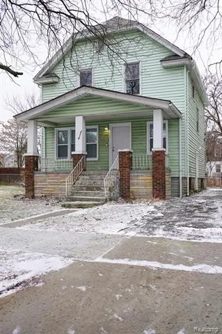 Freshly renovated early century vintage bungalow. Kitchen features new whte Shaker style cabinets, quartz counters, peninsula with undermount stainless steel sink and seated overhang and a complete set of new stainless steel appliances. Both bathrooms (one up, one down) feature new tubs, ceramic surrounds, ceramic floors, vanities, tops and fixtures... all new. New flooring throughout including new carpet in all bedrooms. New paint and fixtures throughout. The first floor bonus room and library could be office, den or 4th and 5th bedrooms with addition of closets or wardrobe cabinets. Huge upper primary bedroom has a sitting area. Clean open basement. New vinyl windows. Furnace & hwh are removed... new ones will be installed for closing. Property is under alarm and video surveillance. NOTE; Vacant lot to the east, also fenced with this property, is owned by Detroit Land Bank and could be purchased from same. Owner is a licensed broker in the state of Michigan