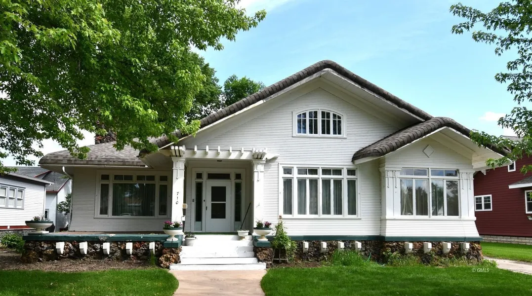NEWLY REMODELED HOME. The hallmark of this home is the irresistible design that evokes the allure and character of this home. This enchanting home built in 1918 offers a perfect blend of historic charm and modern convenience. As you enter the home, you are greeted by an elegant foyer and hall that showcases the original woodwork and architectural details of this historic residence. The hardwood oak floors, mahogany doors, which include a grand beautiful pocket door, and the revolving doors create a cozy and elegant atmosphere. The home also boasts 12-foot ceilings that add spaciousness and grandeur, still easy to clean. New updates, Class 4 Impact Rating Architectural shingle, a high-efficiency furnace, wiring throughout the house, plumbing in the bathrooms and kitchen, and new stainless steel appliances. The home has 3 bedrooms and 2 full baths, Poss 3rd - 1/2 bath upstairs as plumbing is hooked up, with the main level of the home being 2708 sq ft. The home consists of a total of 4088 sq ft. The detached garage provides extra parking or storage. This home reflects a lot of historical generations, watching Glendive grow into the town we know and love.