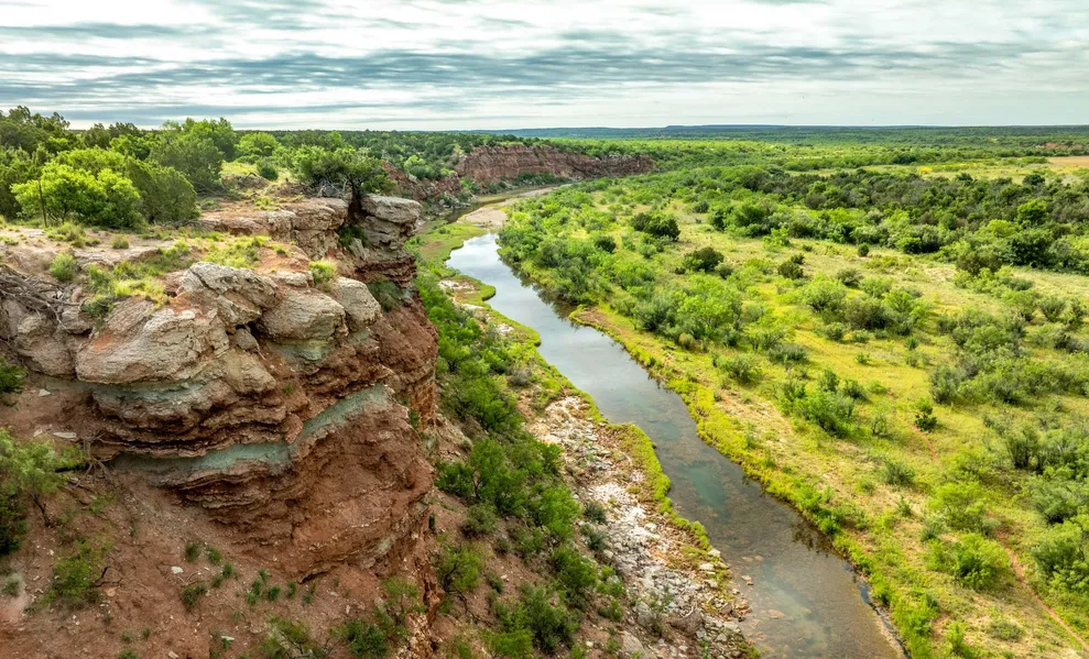 The South Pease River has live spring water feeding the river in this area. There are two spring fed ponds stocked with fish on the property. Both ponds hold water even under severe drought conditions. The ponds are deep and wind through the canyons, offering truly remarkable water features for this area of Texas.