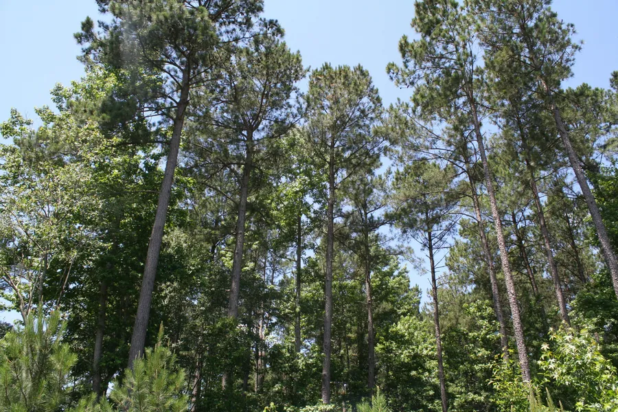 A 30-acre stand of Loblolly Pine, established in 1992, separates the younge...