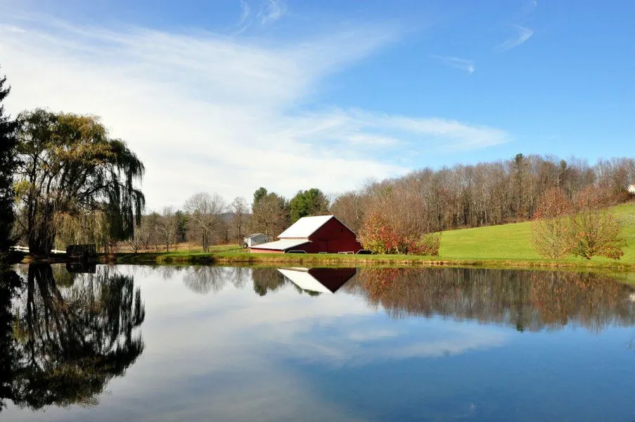 The farm pond is stocked with bass, bluegill and catfish and kids of all ages have fun fishing and skipping stones across the pond. Several large bullfrogs enjoy the pond as well and their nightly singing is a welcome sound. Muskrats, groundhogs, raccoon, and maybe a few otters enjoy the pond from time to time. Canada Geese and wild duck visit the lake on a regular basis.