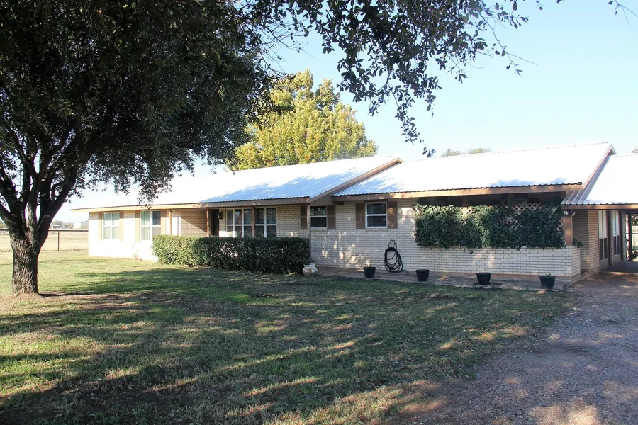 Spacious ranch-style home located on almost 25 acres just a hop, skip and jump from town allows an active family all the benefits of country living as well as being close enough to easily participate in all the town and school activities. The floor plan of the approximately 2500 sf home includes 4 bedrooms, 3 bathrooms, large living room with fireplace, dining room, custom kitchen renovated in 2014 (major appliances included), laundry/utility room with extra storage cabinets, and a big en-closed sun porch. For privacy, the master bedroom, adjoining bathroom with double-sink vanity, step-in shower and separate bathtub and giant-sized walk-in closet is located on the opposite end of the house from the other 3 bedrooms. Amenities include beautiful wood laminate floors, ceiling fans, and lots of closets, recently painted interior and exterior, central heating and cooling (new 5-ton HVAC installed in 2014), and energy efficient windows installed in 2013 to name a few. The exterior of the house is brick with a metal roof and has an attached triple carport. A storage building is located to the rear of the house. Outside the yard gate is a 50x30 enclosed metal shop/barn built on a concrete slab with an additional 50x24 overhang. Roll-up doors on either end of the barn allow drive-thru as well as walk-thru doors. Shop/barn serviced with water and electricity. The entire property is perimeter fenced; the acreage is cross-fenced into 3 large pastures with 4 loafing sheds and water in each pasture. All the pastures are in good shape and heavily covered in grass. One pasture has been used primarily for hay production for personal use as well as a source of income. A fenced alley allows moving stock easily from out-lying pastures to pens at the barn. The yard around the house is also fenced and has an electric gate at entrance to property from the paved farm to market road that fronts the property. This home is very neat and tidy and has been extremely well-maintained. The property is set up especially well for a small livestock operation. The owners up until very recently successfully raised and sold show goats. If you know anything about goats, you know that raising goats requires fences to be in very good shape! Call for an appointment to see if this will work for you!