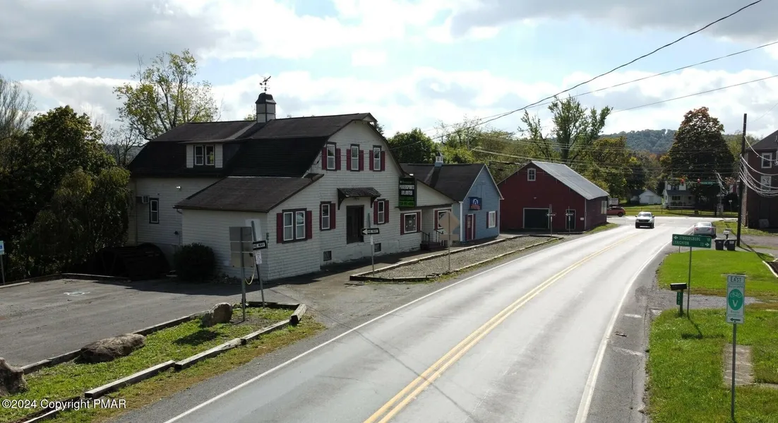 AMAZING CORNER LOCATION with 3 Buildings totaling 10,000+/- SF which center on a converted Historic Gristmill. This renovated property is located at a high-traffic corner with a traffic signal AND over 300 feet of stream frontage on the beautiful Middle Creek. The unique streamfront property features large, open floor plans with exposed barn beams, high ceilings, and great visibility. Formerly operated as a Power Sports Sales and Repair shop and office with additional storage. PennDOT HOP in place with a paved 10 parking space lot. Bring your business and ideas to this site with fantastic visibility and location at the intersection of RT 209 and RT 534. Perfect for end users looking for a ''can't miss'' location. Village Commercial Zoning allows for may permitted commercial uses.