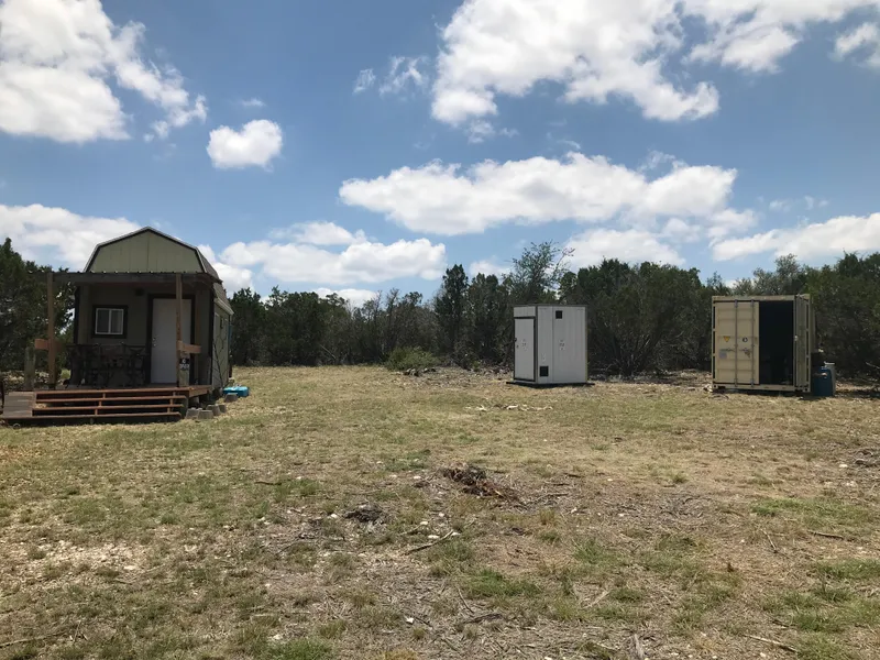 of the surrounding valley in two cleared locations. The access to the site is provided by frontage on the north side of SD 23020 which is an all weather, gravel, single-lane, two-way, privately maintained, subdivision road. There are two gates to access the property, a double ranch gate for large RV access and a single ranch gate. There are three FEMA 250 Gallon water pump/tanks on the property that have never been used or installed. There are three cabins on the property. Two cabins need exterior painting but are in good condition. There is a 20 foot fairly new 20 foot shipping container on the property used for storage. There are two 55 gallon drums attached to the Tiny home/cabin that collected rain water and are usually full. There are deer stands, animal water tanks, and hogs cage trap on the property.