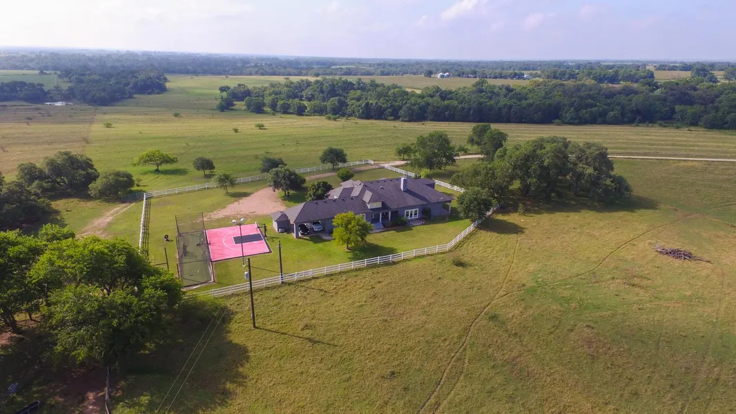 Improvements: A beautiful two story ranch house sets on the highest elevation and overlooks the entire property. The home features a front room, foyer, dining, living, utility, kitchen, breakfast and sitting room off the master bedroom. There are four bedrooms, four full baths and two half baths and totals 3716 sq. ft. of space. Rooms downstairs have high ceilings. It was built originally in 1925 and has been remolded and added to over the years. Although the home is completely updated, the entry features the original foyer and stairs. A two vehicle carport is attached to the house. Between the carport and barn there is a lighted basket ball half court and a netted baseball batting cage. There is a 1,840 sq. ft. metal barn with concrete slab and two 940 sq. ft. overhangs. There are two septic systems and a water well. Electricity provided by GVEC co-op.