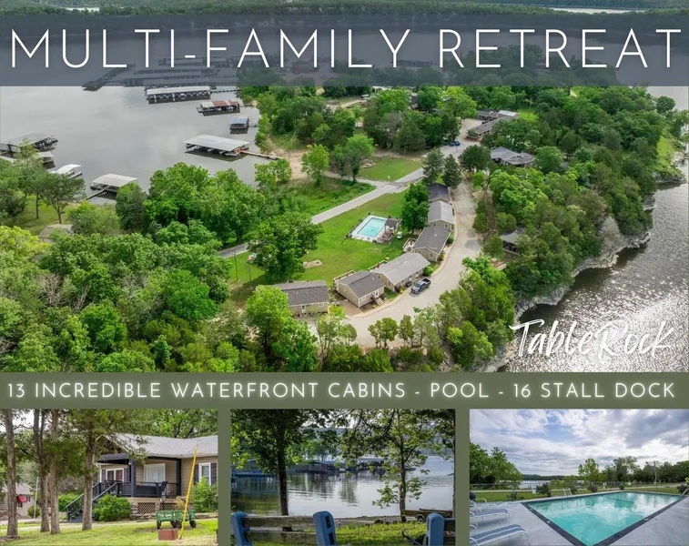 #Welovehideaway! Hideaway Resort has been a favorite spot on #tablerocklake since 1964. For almost 60 years this prime location has served as the backdrop for family vacations, romantic getaways, fishing trips, & so much more. Guests return year after year, w/generation after generation of family & friends. The charm of this classic #lakefrontresort on #tablerocklake is unmatched. W/quiet coves, beautiful views, & endless resort amenities it is easy to see why so many fall in love. Relaxed, yet exceptionally built & maintained, this adorable & nostalgic getaway is tucked away on a 3.2 +/-ac. just above pristine #tablerocklake w/over 1,000 ft +/- of lake frontage & is mere min. from downtown Kimberling City, Branson West & Branson shopping, restaurants, & more. You will relish in the privacy & serenity of the natural landscapes & be exhilarated by the amenities. The welcoming embrace of this truly captivating resort lures you through the entrance into a sprawling gently sloping field dusted w/mature trees, 13 incredible cabins, swimming pool, laundry facility, playground & a 16 stall dock w/storage,swimming platform, & fish cleaning station. This extraordinary property has provided countless hours of pleasure & gratification due to a exceptionally experienced management company who have done all the hard work for you w/ 20+ years of a successful track record, established website & upcoming reservations in the books! Its legacy may endure through your generations to come.** More details in attachments. And the location! Walk to beautiful Hideaway Marina & only a short drive to world class dining, shows, golf, amusement parks, hiking & biking, & nightlife in Branson by land & fishing, watersports, several floating restaurants & marinas by water. Whether you're looking for a weekend getaway w/family, a lakefront romantic retreat, a cabin for reunions, corporate retreat facility, or just a beautiful place to getaway #hideawayresort is summer ready & waiting for you!