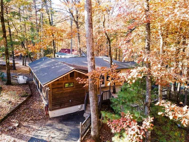 Relax and unwind from the spacious wooden deck, perfect for entertaining or simply enjoying the tranquil solitude of the North Georgia Mountains.