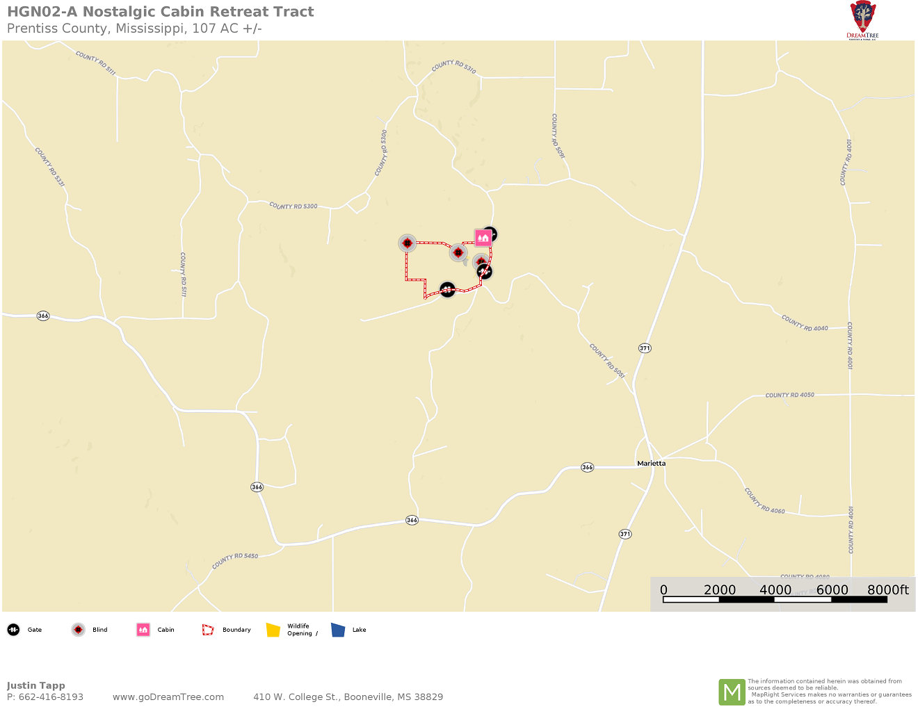 Research Parcel InformationNOTE: If you type in the 911 street address advertised as 194 CR 5051, the GPS will take you to the wrong location... GPS Coordinates: 34.524467, -88.488231 From Marietta: Intersection of Hwy 371 & CR 5051: Travel NW on CR 5051 for 1.6 mi and stay right to stay on CR 5051; travel north on CR 5051 for another 0.4 mi and the gate is on the left.