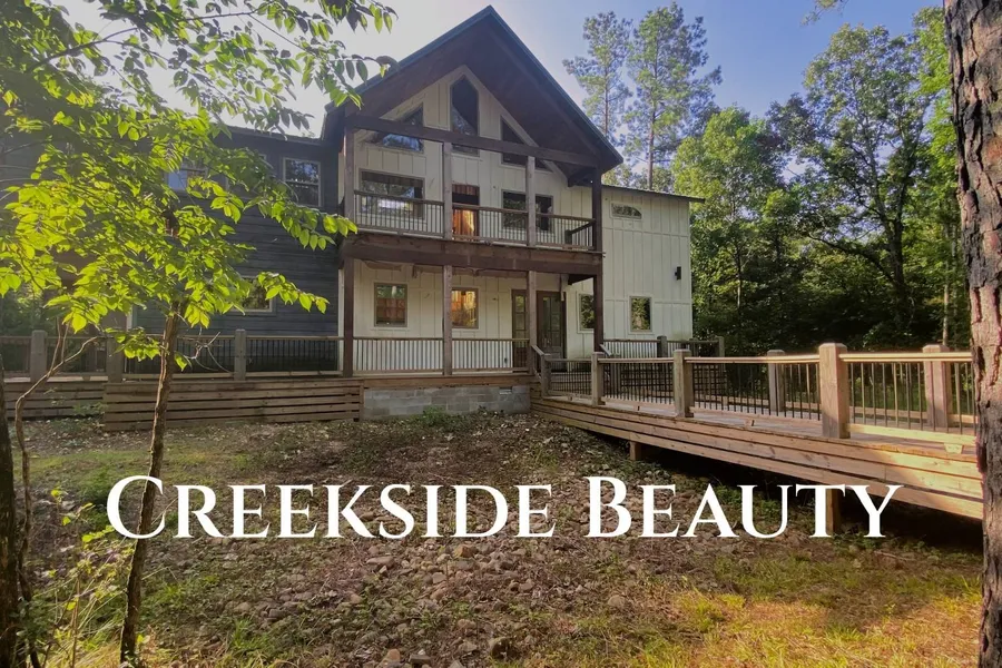 Design your dream Broken Bow retreat on a rare ~2.02-acre lot with two creeks at the end of a cul-de-sac on Eagle Pine Lane. Sold As-Is, this partially built cabin is planned at ~3,104 SF heated plus ~2,179 SF of decks/outdoor living (buyer to verify) and features 4 private bedroom suites, a separate oversized bunk room, 5.5 baths, and a lofted game room overlooking a striking two-story wall of windows. Expansive covered + open decks are mapped for dining, hot tubbing, and fireside lounging with water-feature ambiance. The walkway over the creek sets a memorable arrival. Bring your builder and finish to your taste - rustic-modern, mountain luxe, or clean contemporary. The suite + bunk layout, generous outdoor zones, and indoor-outdoor flow are ideal for hosting groups and future STR potential. Minutes to Hochatown dining, Beavers Bend recreation, and the lake. Notes: Property conve...