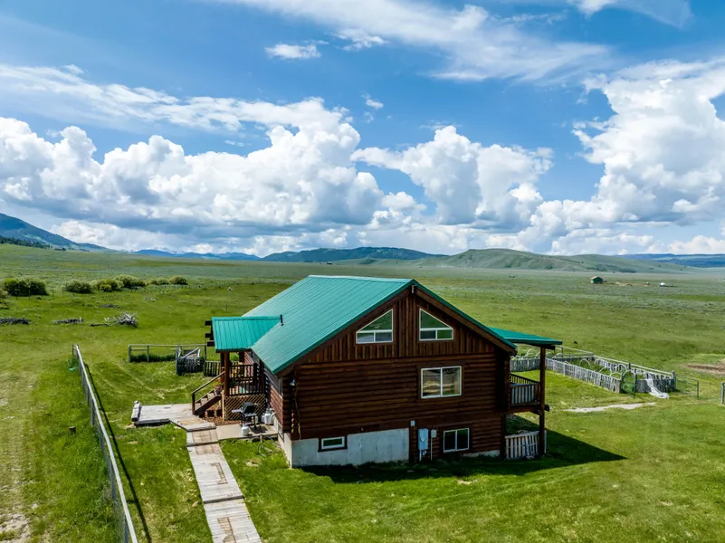 Looking for a charming rustic log cabin on 21.341 acres with live water and close to the Madison River? This fully fenced and cross fenced property could continue as a high elevation farmstead with live seasonal water or serve as a summer retreat for a horse person or fisherman. The two-bedroom cabin is freshly stained and has a main level primary suite with open living room and kitchen. The upstairs loft is enclosed and serves as the second bedroom. The lower level has a walk out to the yard and is plumbed for a third bathroom and wired for an additional two bedrooms plus extra space for mechanical and laundry rooms. Both levels of the home have radiant in-floor heat and it can be supplemented by the wood stove on the main level. There is also a barn with heated stock tank, a chicken coop, re-purposed home stead cabin, raised garden beds, greenhouse, and more. The stunning views take in...
