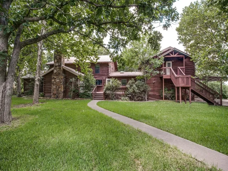 Truly one of a kind!! Live the country lifestyle 10 minutes from downtown Ft Worth. Spacious log cabin sits on 5 heavily treed acres overlooking a private pond. Beautifully landscaped with abundant shade with mature trees and sprinkler system. Home boasts massive log beams, underground wine and storm cellar. and lots of storage. 60X40 metal shop that was once featured in the TEXAS MONTHLY. The shop features concrete floors, electricity, mezzanine and an office: will hold all your toys even a semi. Upstairs office is the perfect man cave.