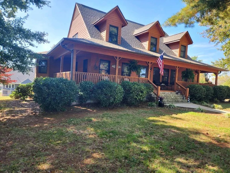 3800+ heated sq ft in this Charming Cabin-style home with Western White Cedar siding and covered front porch. 3 parcels of land combined to total of +/-1.5 acres. Bethlehem is a small community in the foothills of NC with close proximity to Lake Hickory. Cooks Kitchen with gas range, stainless steel appliances (brand new upstairs dishwasher), and desk area. The Living room w/ cathedral ceilings & French doors opening to the expansive rear deck for grilling and entertaining. Rear deck offers storage area for outdoor furniture, etc. Main level: Kitchen, dining, living , office ( w/ wood burning stove/fireplace), half bath and Primary bedroom/bath. Second floor: Loft/ Office area, 2 bedrooms with excellent closet space and full bath. The lower level could be used as a complete second living quarters. Living/Playing area w/ gas logs & pool table, A full 2nd kitchen featuring gas range, dishwasher & refrigerator. Full bath, workshop and storage& bonus room. Hoa $200/y