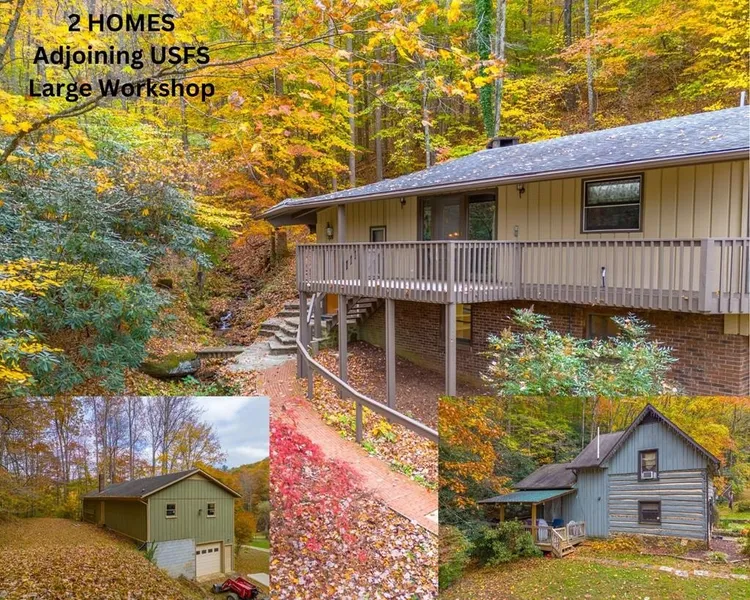 Tucked away deep in a mountain oasis, snuggled up to a USFS backdrop, sits your future family homestead. This hidden gem features 2 homes: a 4BR/3BA main home and a separate 2BD/2BA cabin within sight of each other. The cabin is an antique log and can provide an additional source of income. Just at the property entrance lies the cabin, along with a landscaped garden area and chicken coop, all surrounding a beautiful evergreen. Follow the drive to the main home above and walk next to the babbling stream along the brick path to the front entrance. The main house features fine wood craftmanship w/ wormy Chesnut in the living area, featuring a full, wall-sized window illuminating the room and connecting you with the outdoor scenery, accented by a wood-burning fireplace. Overlooking is a fully functional kitchen, an oversized primary bedroom, and 2 more BRs. The lower level has an additional BR and utility area. Just to the north lies a full-size 2-level workshop capable of accommodating almost any arts and crafts hobby possible. With some expansion work, this has the potential to create separate living quarters. A must-see to appreciate!