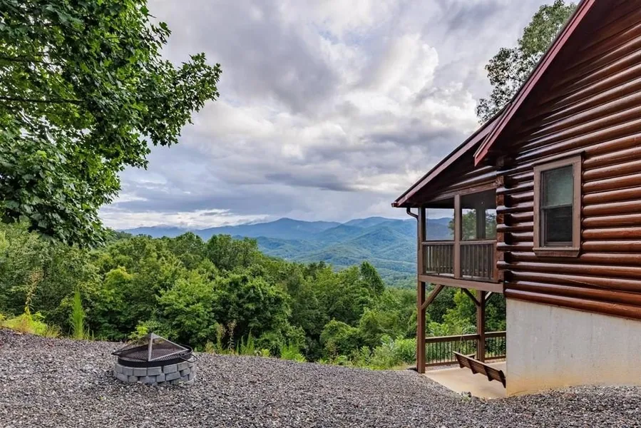 Luxury 2-story, 2,600 sq. ft. cabin in a private gated community with paved roads. Featuring 3 bedrooms plus office/bonus, 3.5 baths, and a walkout basement. Main level offers an open kitchen with custom cabinetry, dining, living room with views, laundry, half bath, and a spacious primary suite with screened porch. Upstairs has 2 large bedrooms and a full bath. Basement includes a livingroom/game room with patio access, bath, storage, and office/bonus room. Wraparound porch, back deck with breathtaking long-range views, and dual driveways with extra parking make this home perfect for entertaining and mountain living.